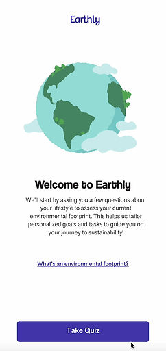 Earthly is an app that helps users reduce their carbon footprint through personalized goals. After answering a few lifestyle questions, users receive tailored recommendations to improve their environmental impact. The app offers EcoPoints for completing tasks. As users progress they level up, making sustainability accessible and fun.