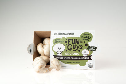 The FunGuys packaging system features a stackable carton and sleeve that keeps the mushrooms fresh in the fridge for extended product life. The package includes interactive elements such as the pull tabs and fun brand mascots for each individual mushroom type, the package encourages users to pick our product over competitors who utilize bland, plastic designs. The package is also educational and includes recipes to give users more ideas on how to use the product. FunGuys paperboard packaging is a sustainable alternative to current plastic solutions. It is 100% recyclable!